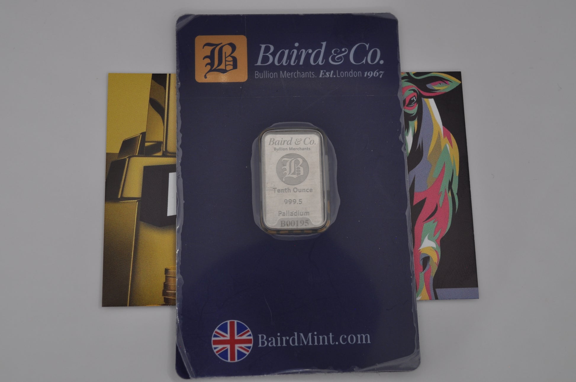 1/10oz Baird & Co Palladium Bar | .9995 Fine | Sealed in Assay Card