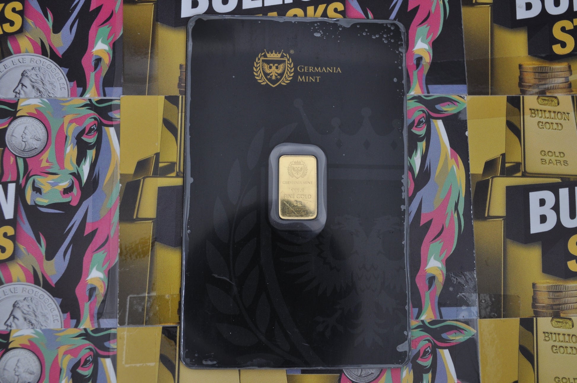 1g Gold Bar | Germania Mint | .9999 Fine Gold | Black Assay Card | Serialized