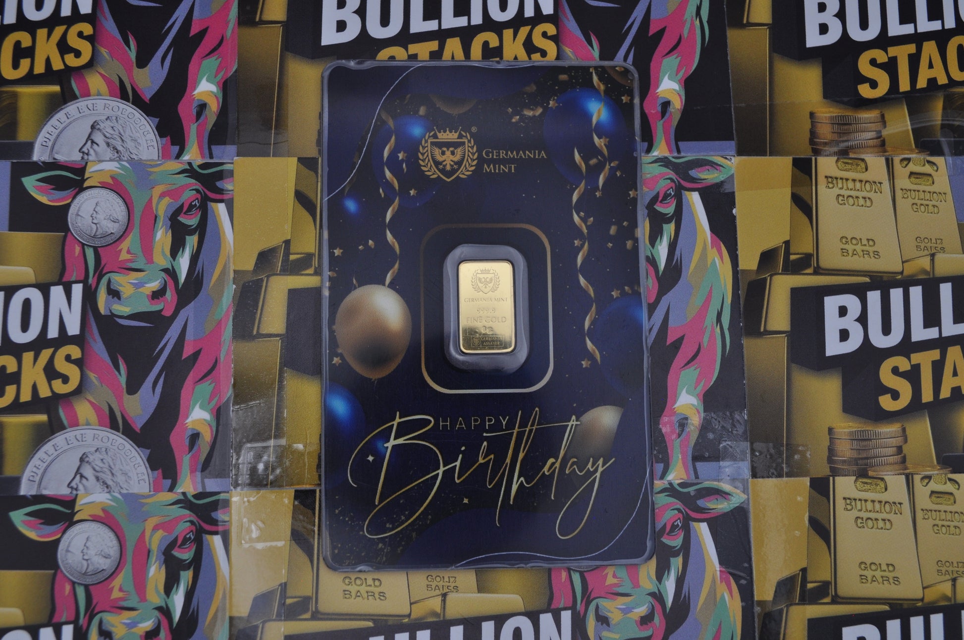 Make their birthday unforgettable with a timeless gift — the Germania Mint 1g Gold “Happy Birthday” Bar. Struck from .9999 fine gold, this limited-edition piece features a festive design and comes sealed in bright, celebratory packaging, making it the perfect keepsake for a special day.