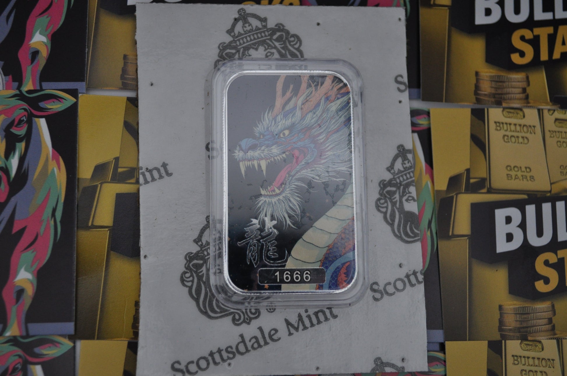 1oz Silver Dragon Bar “Jīng” – Scottsdale Mint | .999 Fine Silver | Sealed in OMP