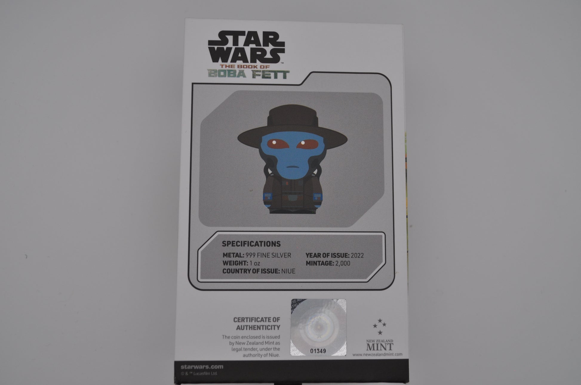 Crafted by the New Zealand Mint, this officially licensed 1oz silver coin features Bane in bold Chibi® form, with vibrant color and a proof-quality finish. Each coin is legal tender and comes in its original Star Wars-branded display box, complete with a themed outer sleeve and a viewing window — perfect for display or gifting.