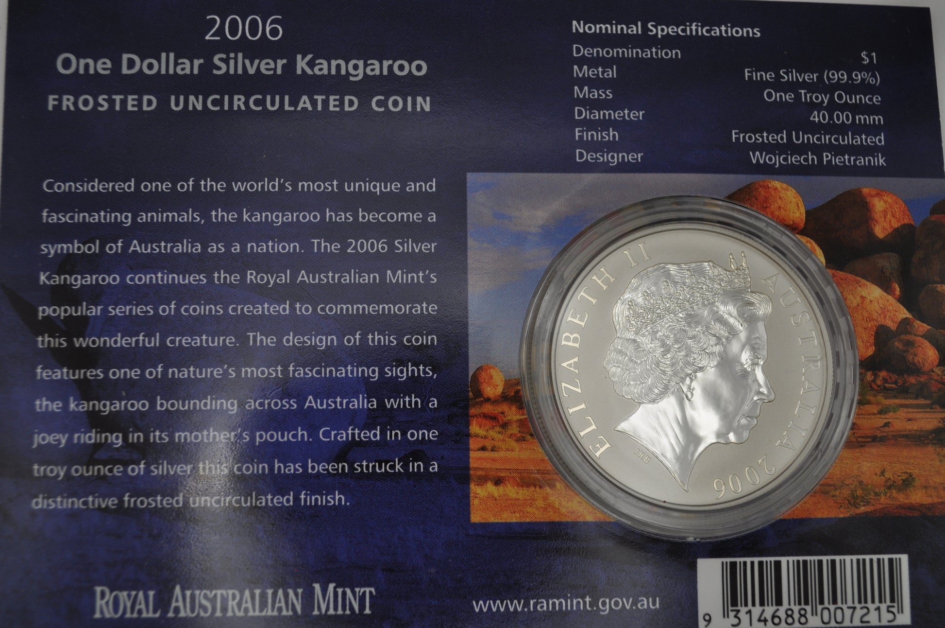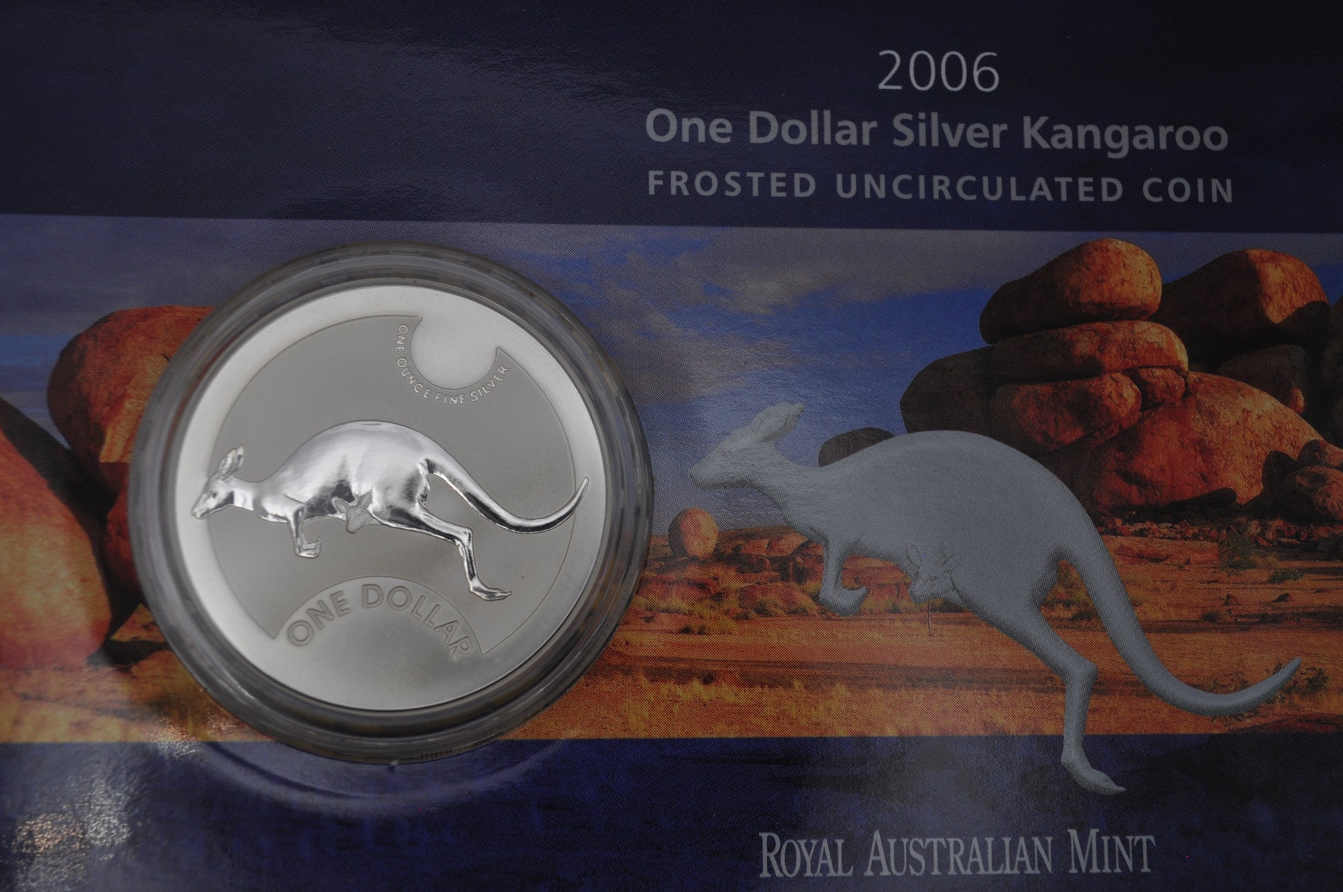 2006 1oz Silver Kangaroo Coin – Frosted Uncirculated – In Assay