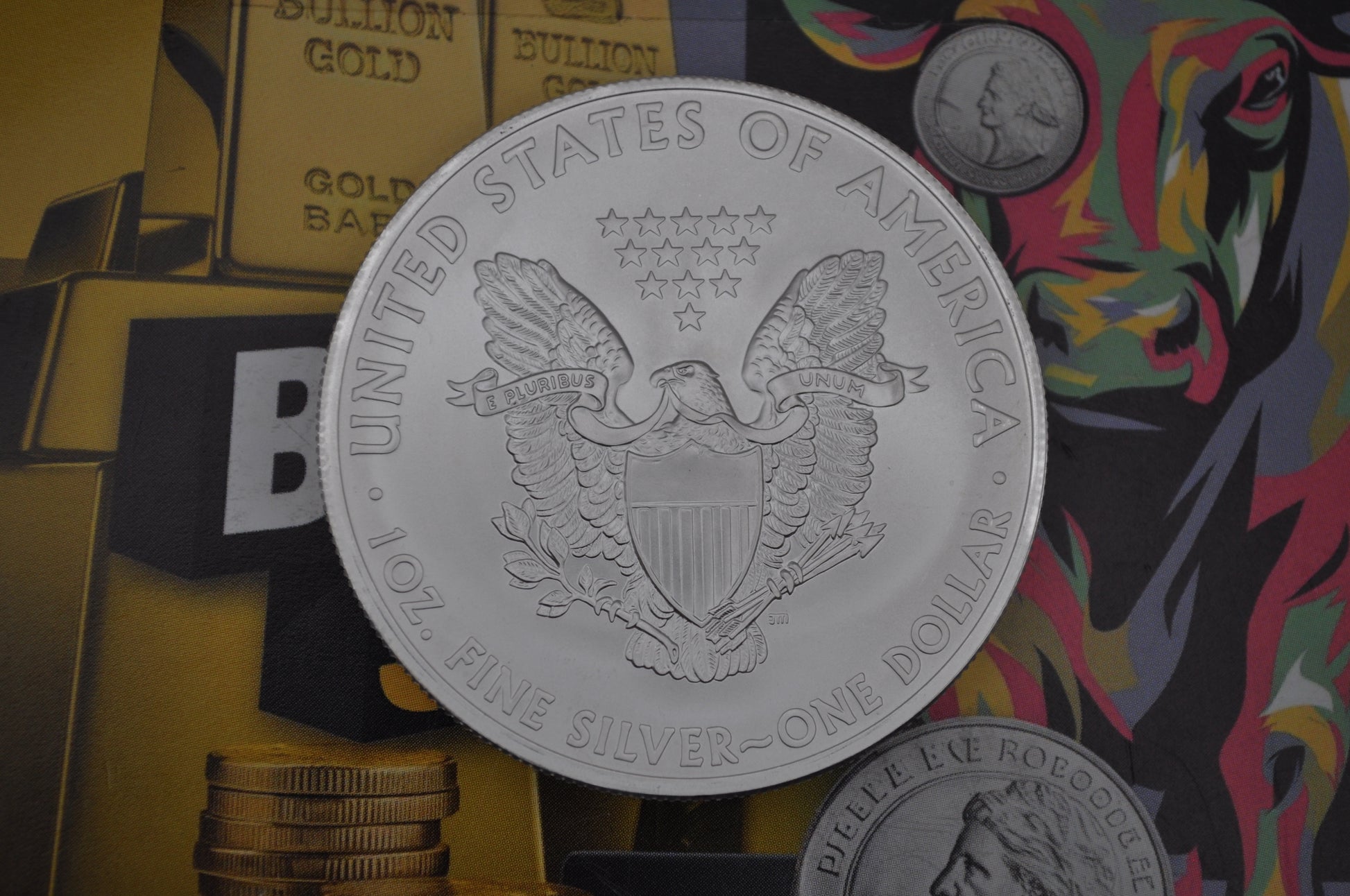 Reverse Design: Features a powerful image of the American eagle with an olive branch in its right talon and arrows in its left, designed by John Mercanti, accompanied by the inscriptions “UNITED STATES OF AMERICA,” “E PLURIBUS UNUM,” “1 OZ. FINE SILVER,” and the denomination.
