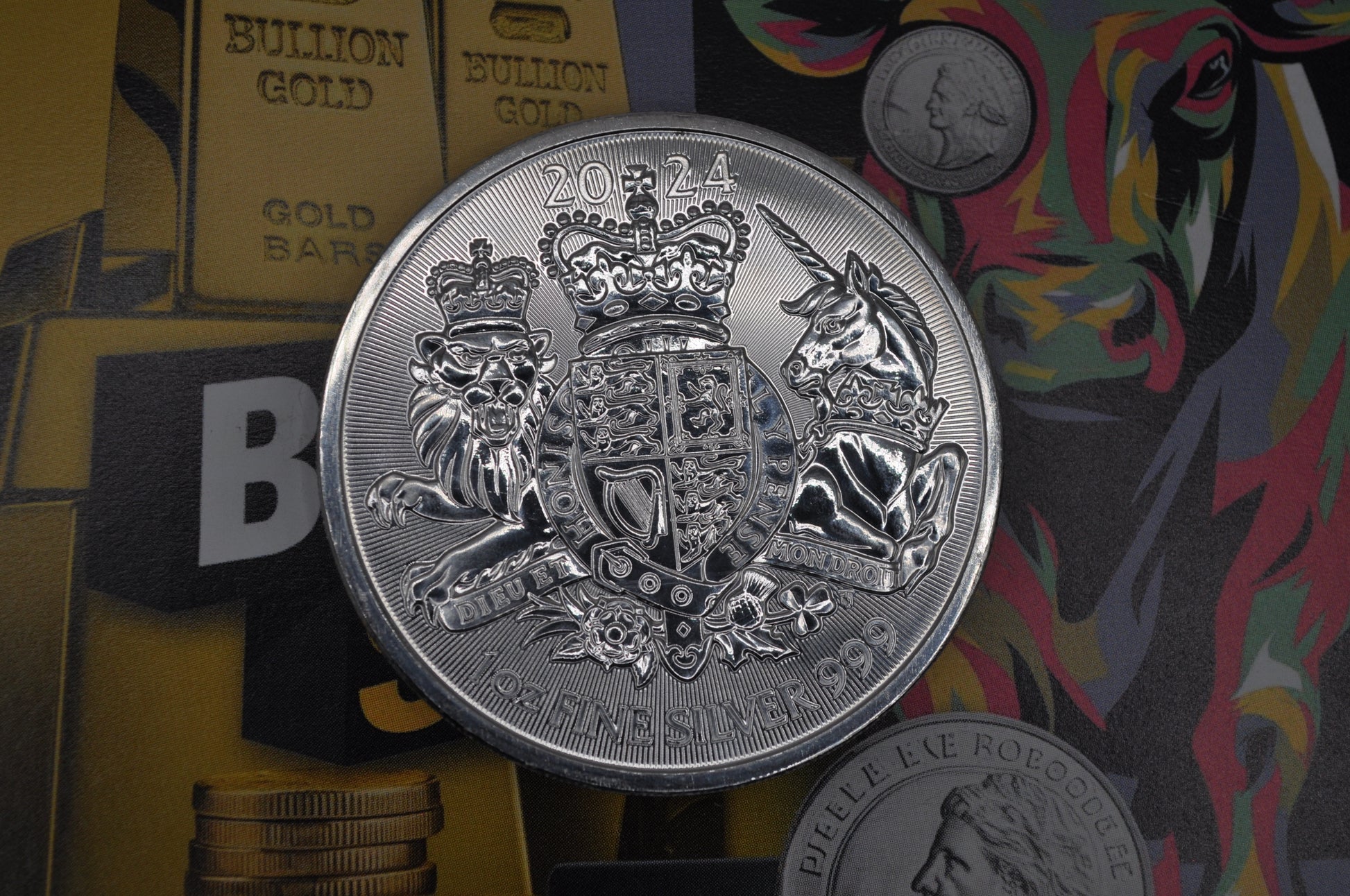 The 2024 1oz Silver Royal Arms coin is a striking tribute to the United Kingdom's rich heraldic tradition. Struck by The Royal Mint in .999 fine silver, it features the historic Royal Arms of the United Kingdom, making it a standout piece for both investors and collectors.