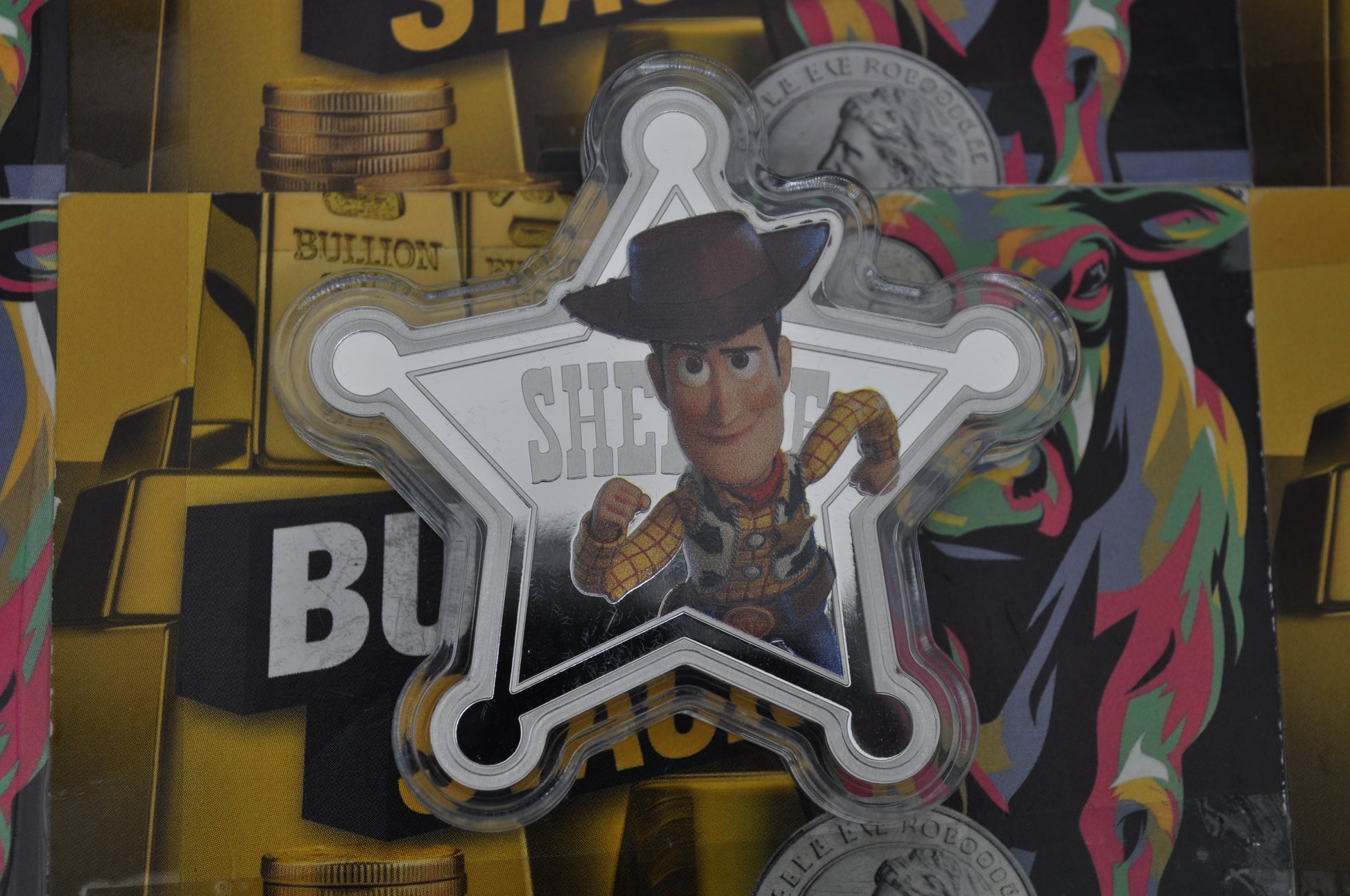 Struck from 1 troy ounce of .999 fine silver, this beautiful coin features a vibrant full-colour image of Sheriff Woody, the loyal, warm-hearted cowboy who stole the hearts of audiences around the world. The reverse displays the Niue coat of arms, along with weight, purity, and the legal tender denomination.