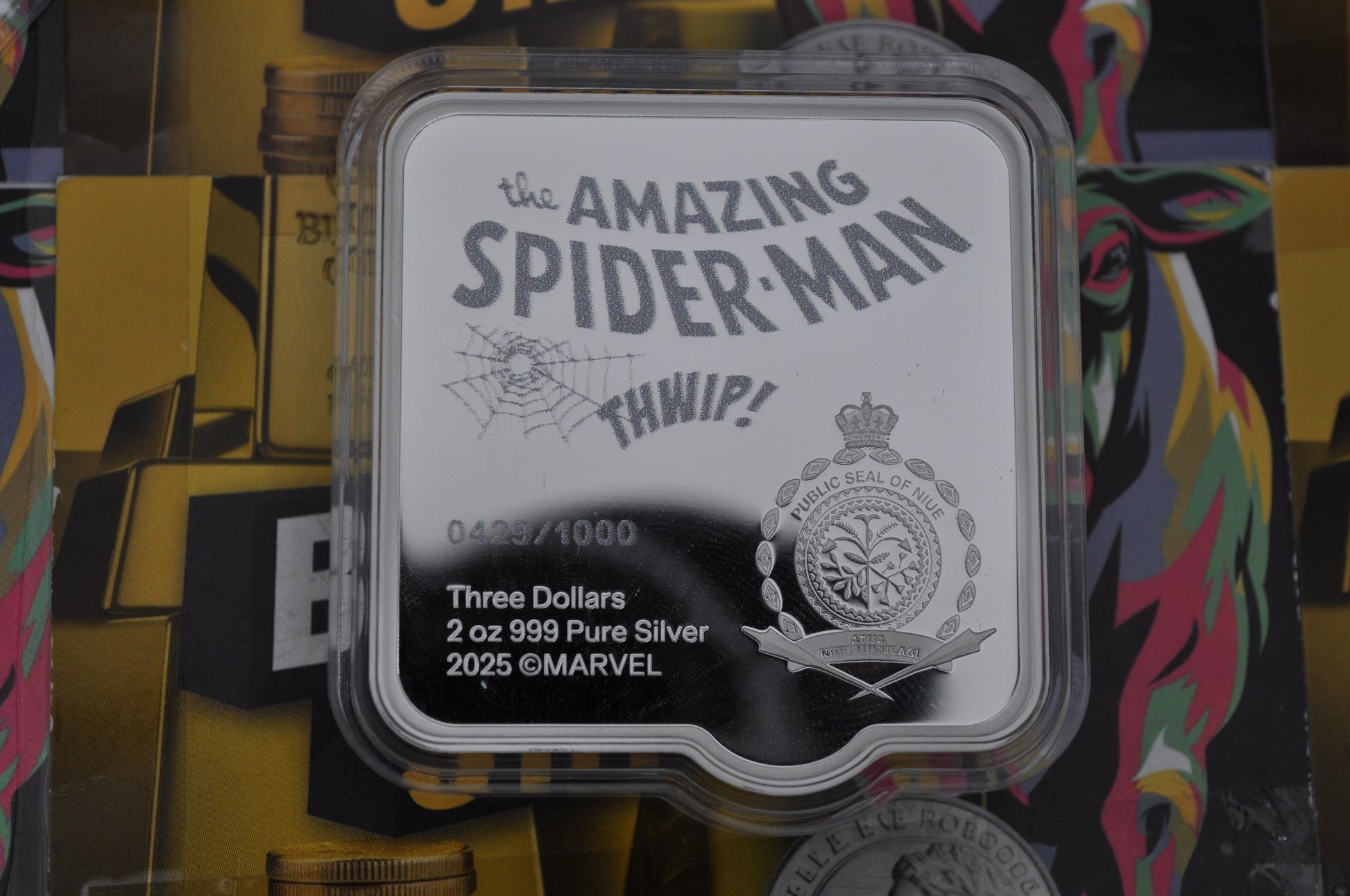 🕸️ Bring the Spider-Verse to your stack — add the Spider-Man “THWIP!” 1oz Silver Collectible Coin to your collection today!