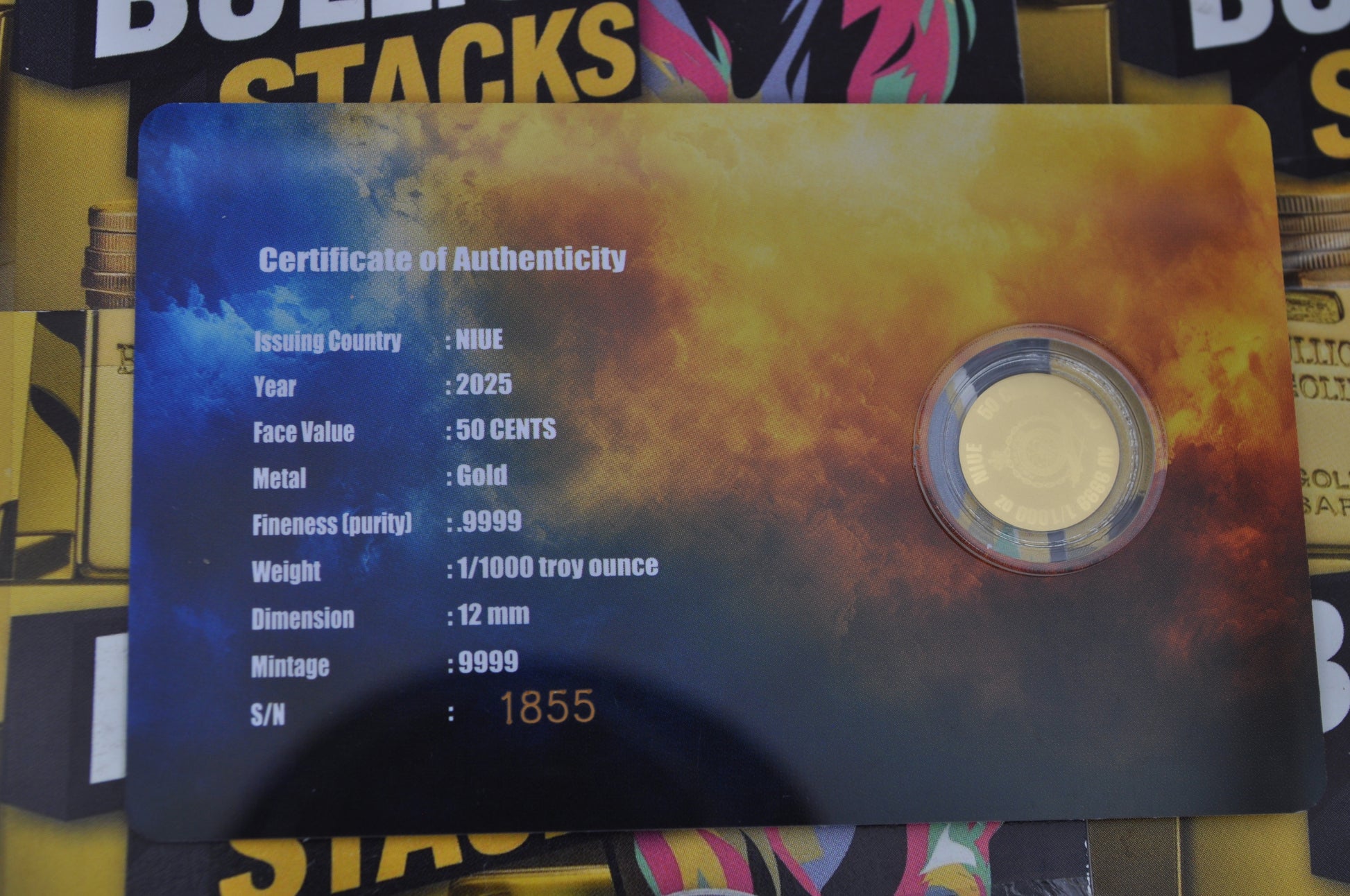 ⚖️ Contains 1/1000th troy oz of .9999 fine gold