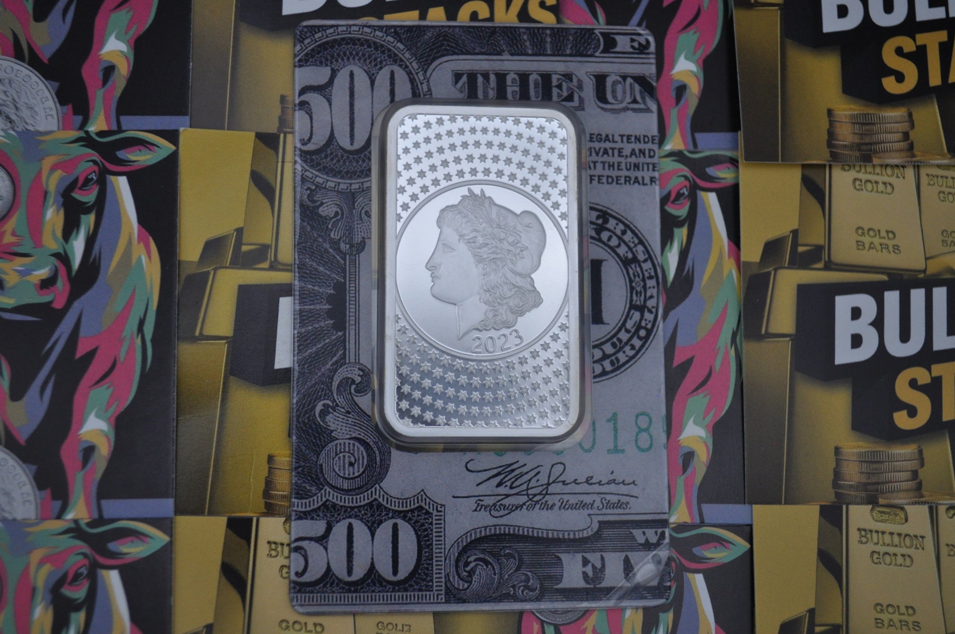 🪙 A perfect blend of Americana and Swiss craftsmanship, the 2023 PAMP Morgan $500 Silver Bar is a standout collectible with investment-grade silver and vintage flair — ideal for bullion buyers and banknote history fans alike.